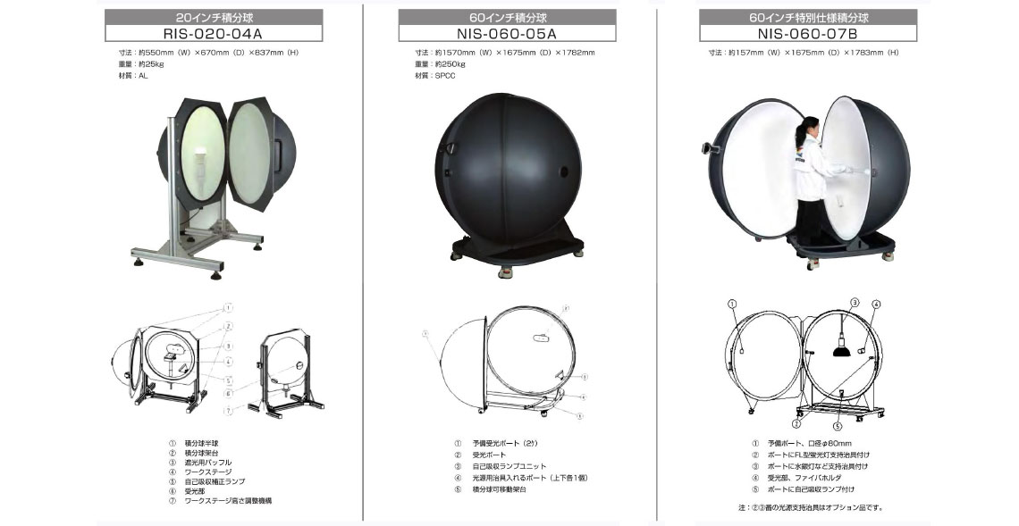 積分球は、光源の光学特性の計測を行うため測定ツールです。